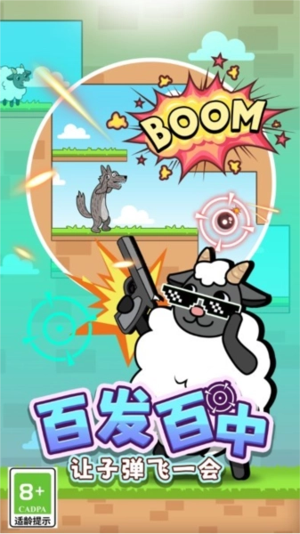 3、休闲解压体验:游戏手感顺滑舒适,整体氛围轻松惬意,玩家在射击恶狼、拯救小羊的过程中能有效释放压力,尽情享受休闲娱乐的美好时光。