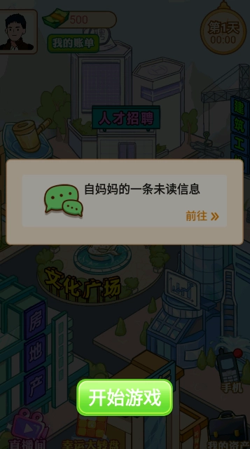2、完成新手剧情引导后,点击图中的人才招聘入口,就可以开始通过完成工作来赚钱了。