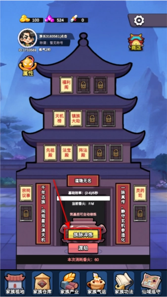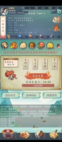 9、在传宗接代的过程中,借助“石洞龙眼”来提升生出神童的概率,等生下神童后,为他配备文师(优先选择神级文师),接着在家谱界面找到这位神童族人,点击其右上角的“继”字,将他设为继承人,之后就着重培养他,各类丹药都给他使用!
