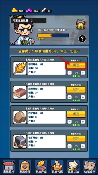 2、赶紧把那3条家规提升到3级!这样不仅能提高声望,每次家族发展的时候还能给族人增加属性呢!