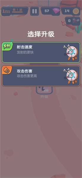 2、击败敌人后可获取金币,操控角色移动到升级方块处,能够提升武器的伤害、射速等属性。