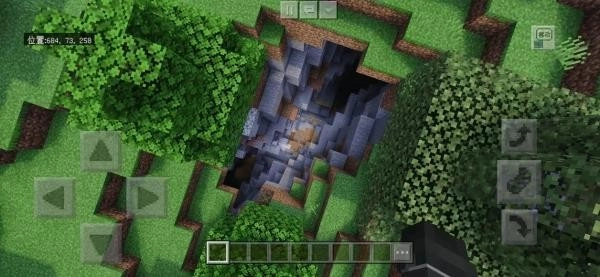 这个地图的出生点附近有个垂直矿洞,生存模式下开矿特别合适,里面岔路不少,得记好路线(图片左上角有坐标标注)。