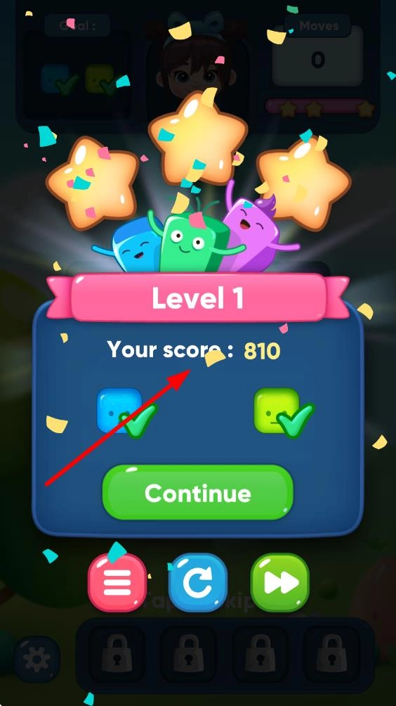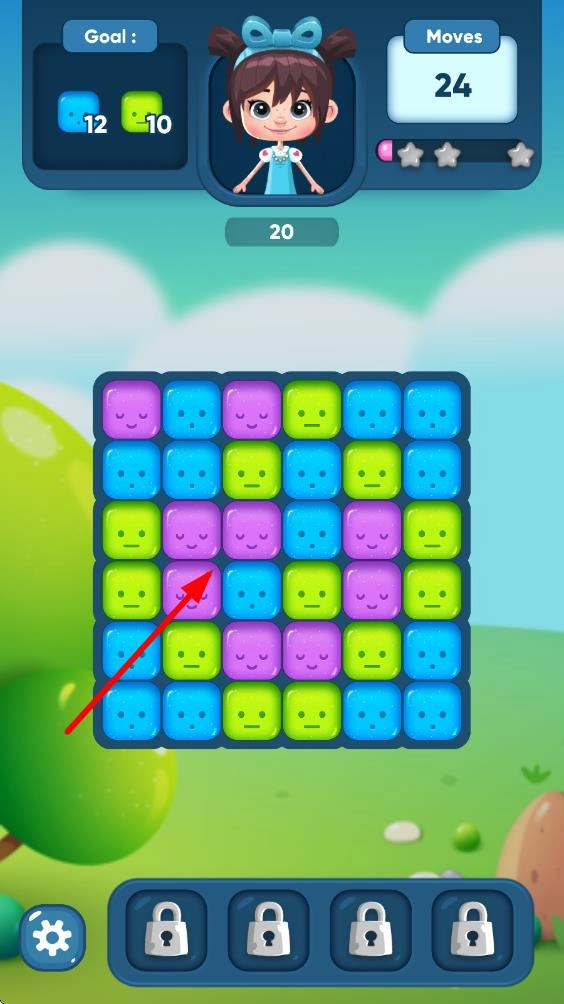 2、剧情冒险模式:以果冻团伙的魔法世界旅行为主线,每章节对应独特场景,消除方块解锁剧情片段,让休闲玩法兼具叙事沉浸感。