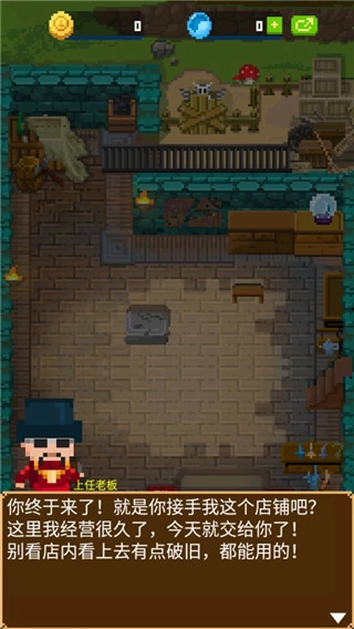 1、进入锻冶屋英雄谭,和前任老板交谈,知晓店铺的基本状况。