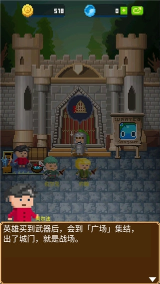 2、英雄会前来购置武器,配备好装备后奔赴战场,剿灭成群的魔物。