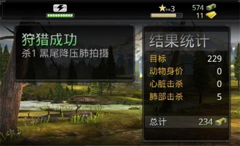 成功猎杀之后,会显示结果统计,其中包含任务完成所获得的金钱、动物本身的价值以及击杀部位的价值总和。