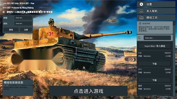 模组:玩家可以自行制作坦克和地图。需要注意的是,玩家制作的模组在平衡性方面可能存在一定问题。