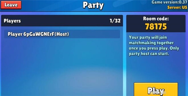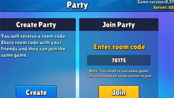 4、点击右侧的PARTY选项进入多人模式,在这里你既可以创建新房间,也能通过输入好友的房间代码来加入对方的房间。