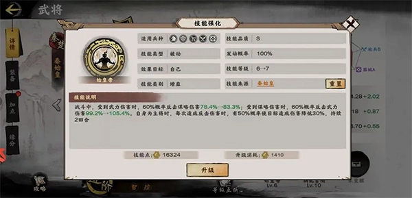 每个技能的等级上限为10级,升级时需要消耗技能点。玩家可以将闲置的武将转化为技能点,不过该操作需要花费一定数量的铜币;若选择用金币进行转化,则能获得双倍的技能点。此外,技能点还有其他获取途径,比如通过铜币连续招募可大量获得,或者在商店、活动中兑换购买也能获取技能点。