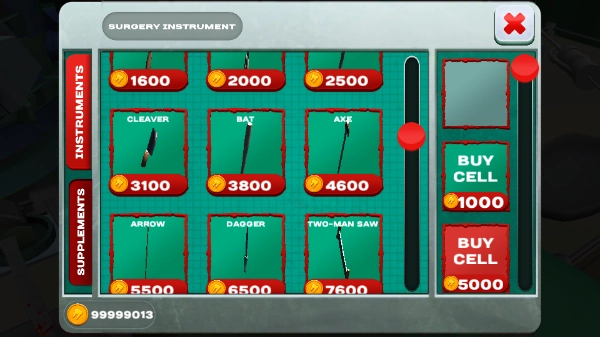 5、获取的金币能够用来购买其他手术器械,越高级的器械越能适配难度更高的手术