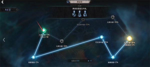 目前黄道宫仍有6个开放的星座群,玩家能够通过解锁不同的星座群获取对应的力量。这便是决定每位玩家技能发展方向差异化的特性点,特性点是玩家达到10级后,每提升一级就会获得1点,玩家可在星座群中进行分配。
