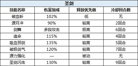剑舞:多段攻击技能。可对单一目标连续造成两次物理伤害,释放技能后会进入持续2回合的休息与养精蓄锐状态,(需当前生命值高于25%才能使用)。