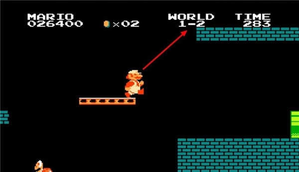 1、通过1-1关卡后进入1-2关卡,利用第二个移动梯选择最上方的路径。