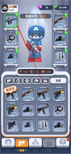 3、选择想要合成的武器,并且点击3件一样的武器。