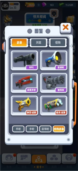 几十种枪械各有不同属性,需灵活运用以应对多样场景。此外,加特林、火箭筒等强力武器也等待着你去解锁。
