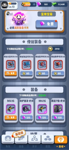 目前特工局的传说装备分为传说武器和传说防具两类。武器碎片主要通过通关关卡获得,经本局长测试,各关卡的武器碎片掉率相差不大,所以可以通过刷难度较低的关卡来获取武器碎片。