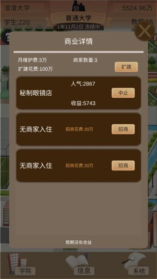 6、玩家需要持续思考,一旦收支无法平衡,学校就会面临倒闭的风险。