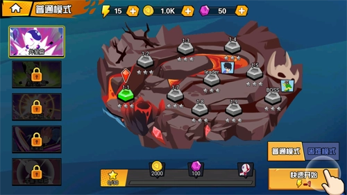 在关卡界面,玩家可以在此选择培养角色、扫荡已通关的副本、进行阵容布置,还能直接点击敌人的形象进入战斗界面。