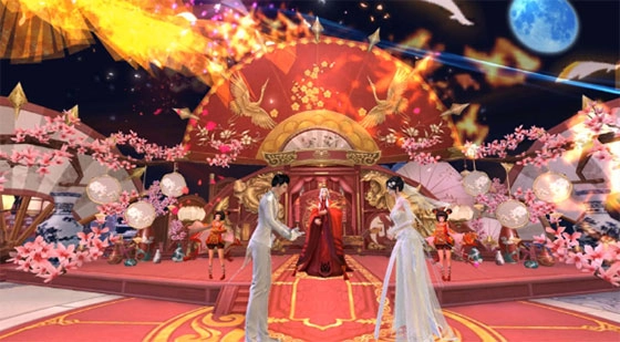 婚礼进行过程中,会设置不少趣味环节,比如堵门游戏:新娘与伴娘团、新郎与伴郎团会被一道墙隔开。婚礼正式启动后,新郎和伴郎团可以拆墙,新娘和伴娘团则能补墙,只有当墙被拆穿时,新娘才能与新郎相见,这是不是和现实里的婚礼很相似呢!至于拼酒、品尝美食等其他活动,就留待各位玩家亲自去探索体验啦,所有参与婚礼的玩家都能获得相应的道具奖励!