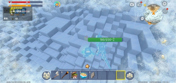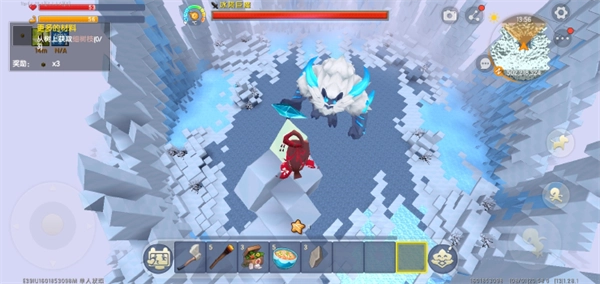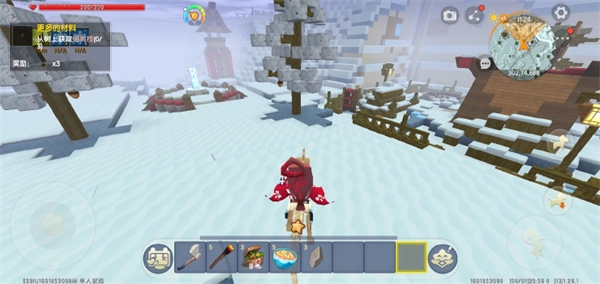3、我们往冰原深处一直行进,很快就能找到冰原村庄。更新后的冰原还出现了不少动物,有活泼可爱的兔子,主要有白色和棕色两种;还有大小不一的牦牛,另外也会遇到冰冻人,击败它们后会掉落其手中的武器,用这武器攻击其他动物,能将它们冰冻起来。