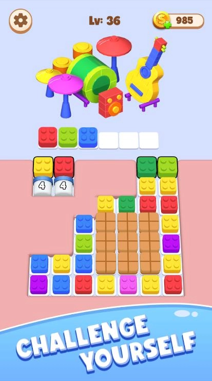 1、方块匹配与模型建造融合的创意休闲游戏,适合所有年龄段。