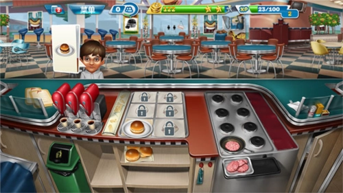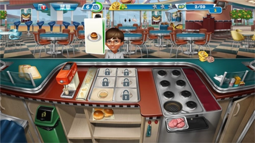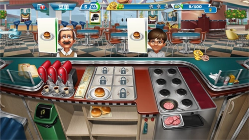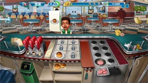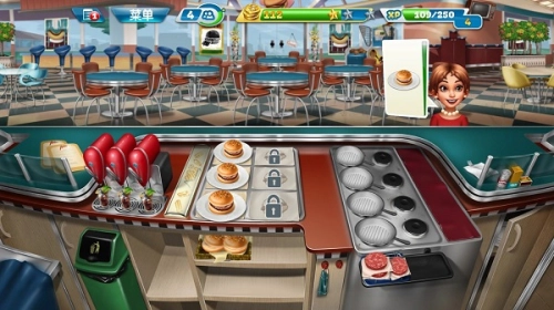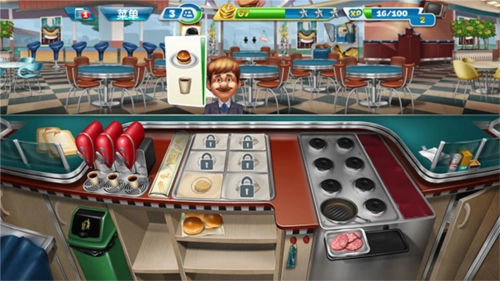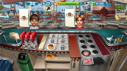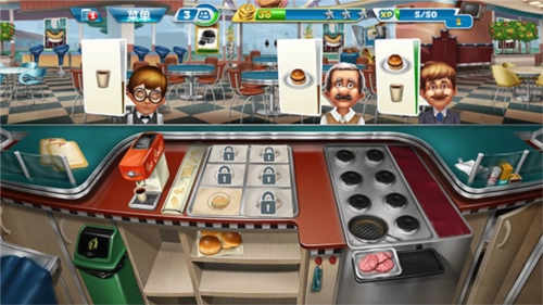 随着玩家持续解锁关卡,能获取更多新的食材与道具,操作也会愈发慌乱。在此小编分享一个小技巧:不少客人会选择点套餐,而套餐里只要上了其中一种食物就能延长顾客的等待时间,所以可以提前准备一些饮品,用来增加顾客的等待时间。