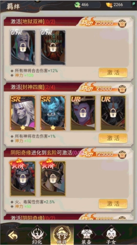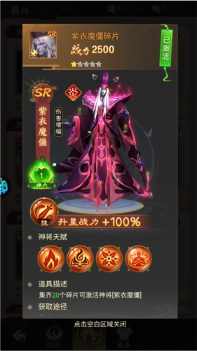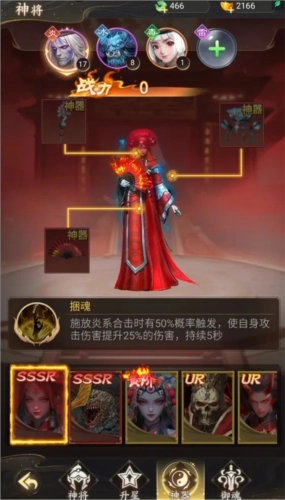 把获取到的神将添加到阵容里,借助升星、装备神器、激活御魂等方法来提升战力。