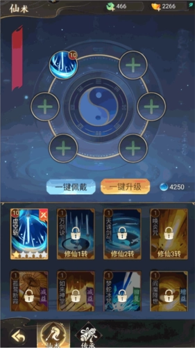 将获得的仙玉佩载,然后对仙术进行培养升级。