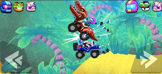3、正式开始后点击屏幕上的箭头控制车辆前进和后退,撞击对手头部就可以赢得胜利。