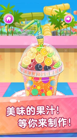 玩家们在这里能够打造一个专属于自己的果汁店,画质音质等功能使非常的棒的,还有各种工具提供给玩家们,相信能够带给大家很棒的体验感,玩家通过制作各种果汁甜品满足客人需求,同时享受放松的感觉,缓解压力。游戏提供大量果汁配方,指南和任务,玩家可以升级商店,解锁更多客户,切割水果、混合冰块和零食。每种果汁都有详细介绍,游戏还提供评价系统和特别口味开发,让玩家更好参考和赚取佣金。简单放新鲜水果进榨汁机,即可获得美味果汁。