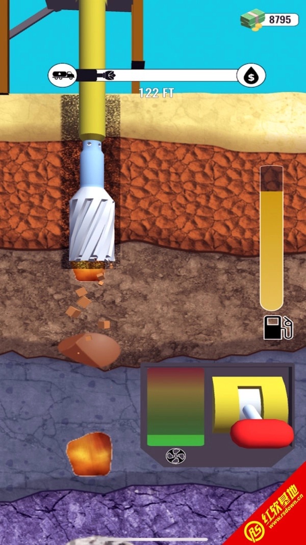 操作非常简单,玩家需要控制钻头继续下降直到挖出油为止。