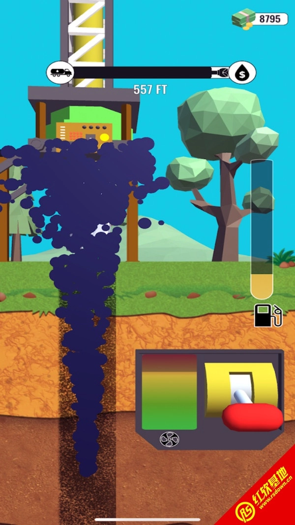 玩家需要在不同的场景中收集更多的石油,以便他们的钻机可以挖掘更深的石油;