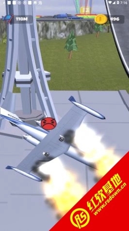 玩家需要不断调整方向,并使用引擎动力尝试飞行更长的距离。