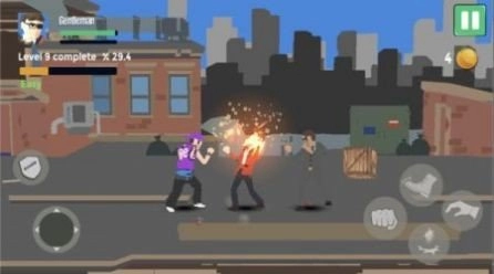1.方块卡通分各个的街头格斗游戏,选择不同的英雄进行刺激的街头格斗。