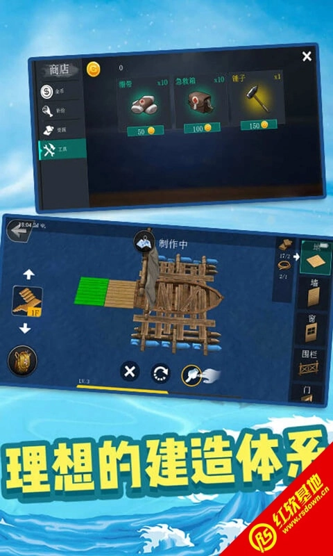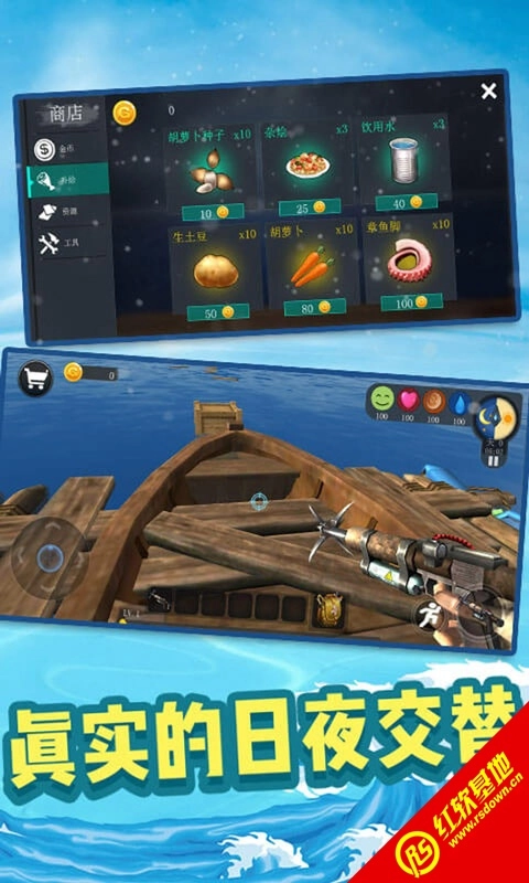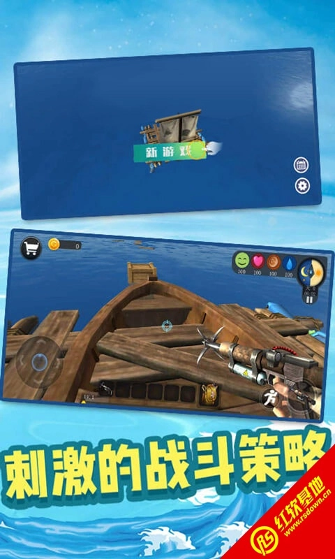 1.海洋里分布着不少材料,你可以逐步打捞这些零散的材料,用来升级和加固竹筏;