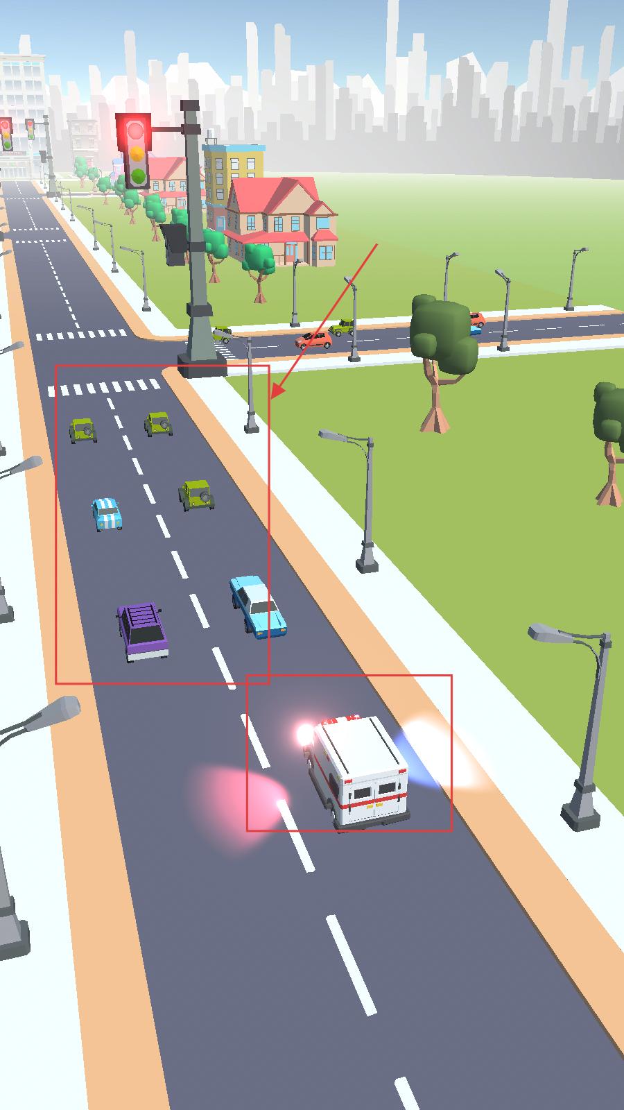 2、玩家需优先为救护车让行,避开其他车辆,引导它安全抵达医院,以此完成本关任务。