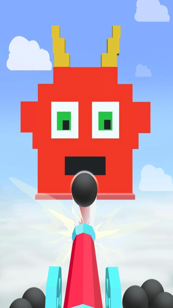 1、方块风格的画面设计增添了游戏的乐趣,趣味造型模拟让大炮射击更加的精彩;