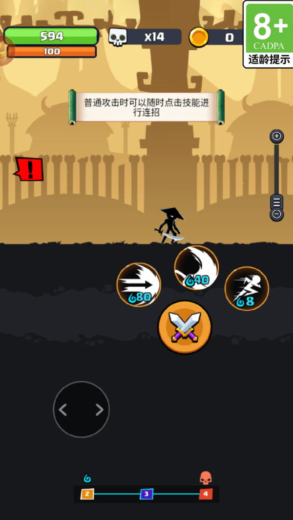 1. 操控火柴人展开战斗:玩家需借助虚拟摇杆来控制火柴人的移动与攻击动作,运用火柴人独有的技能去战胜敌人。