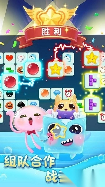 该模式为同屏组队消除玩法,6人分为两队协作竞争,优先完成全盘消除的一方获胜;