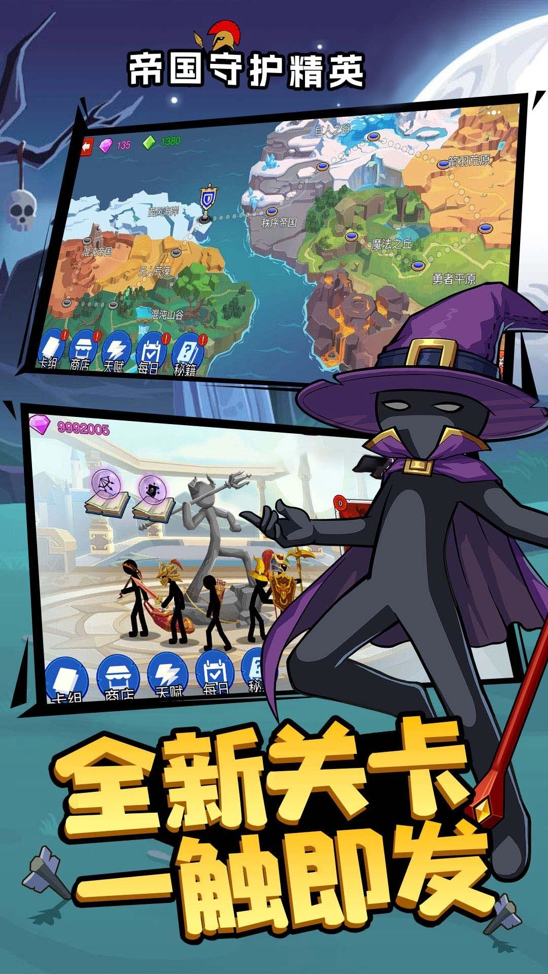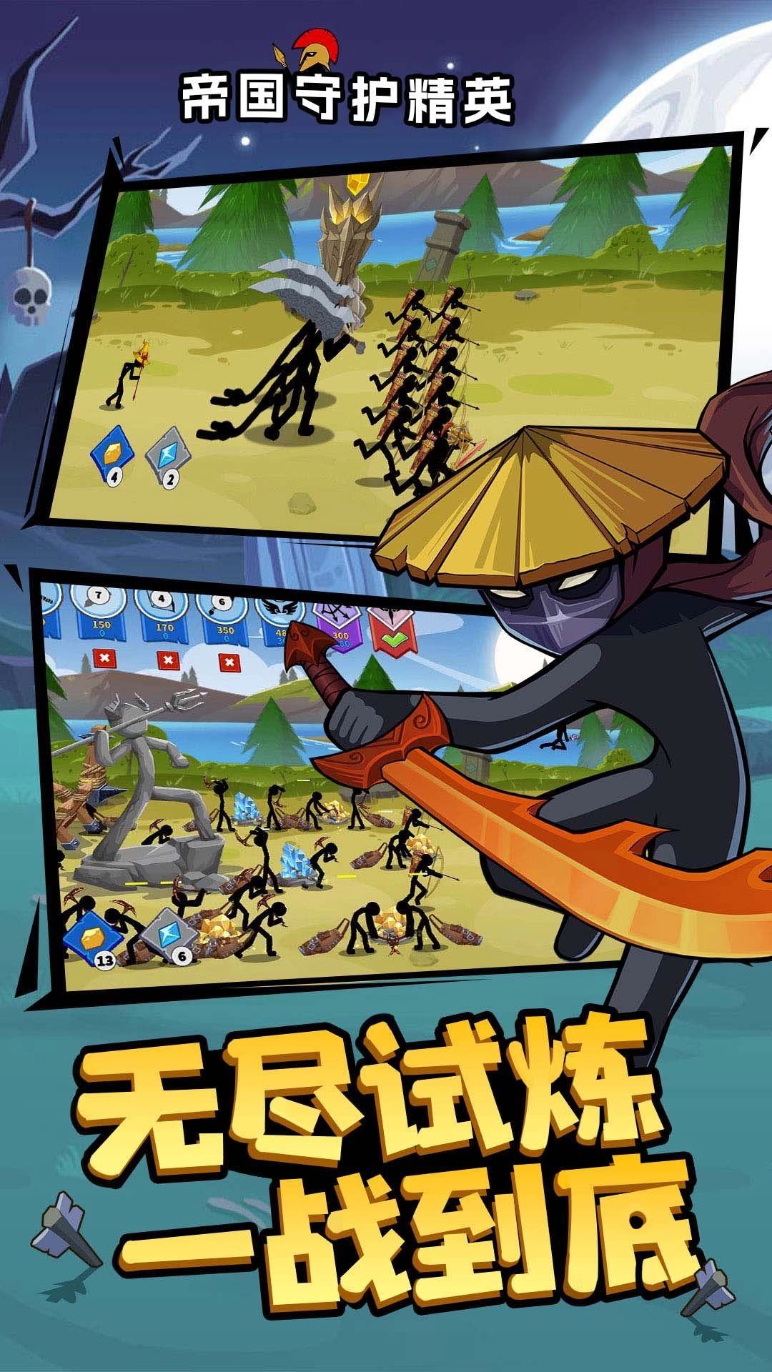 【帝国守护精英】是一款以火柴人为题材的策略战争游戏,玩家作为指挥官,需要招募并训练各具特色的火柴人军队,通过智慧排兵布阵,防守帝国免遭敌人侵袭,同时向外扩张领土。游戏融合了塔防与即时战略元素,每一场战斗都考验着玩家的策略与反应能力。快节奏的游戏玩法,赶快来吧!