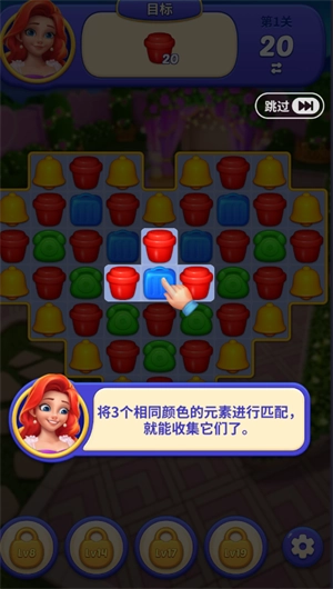 当三个同色的小物件连成一线时,它们就会被自动收纳起来,只要攒够了关卡要求的物件总数,就能顺利进入下一关啦