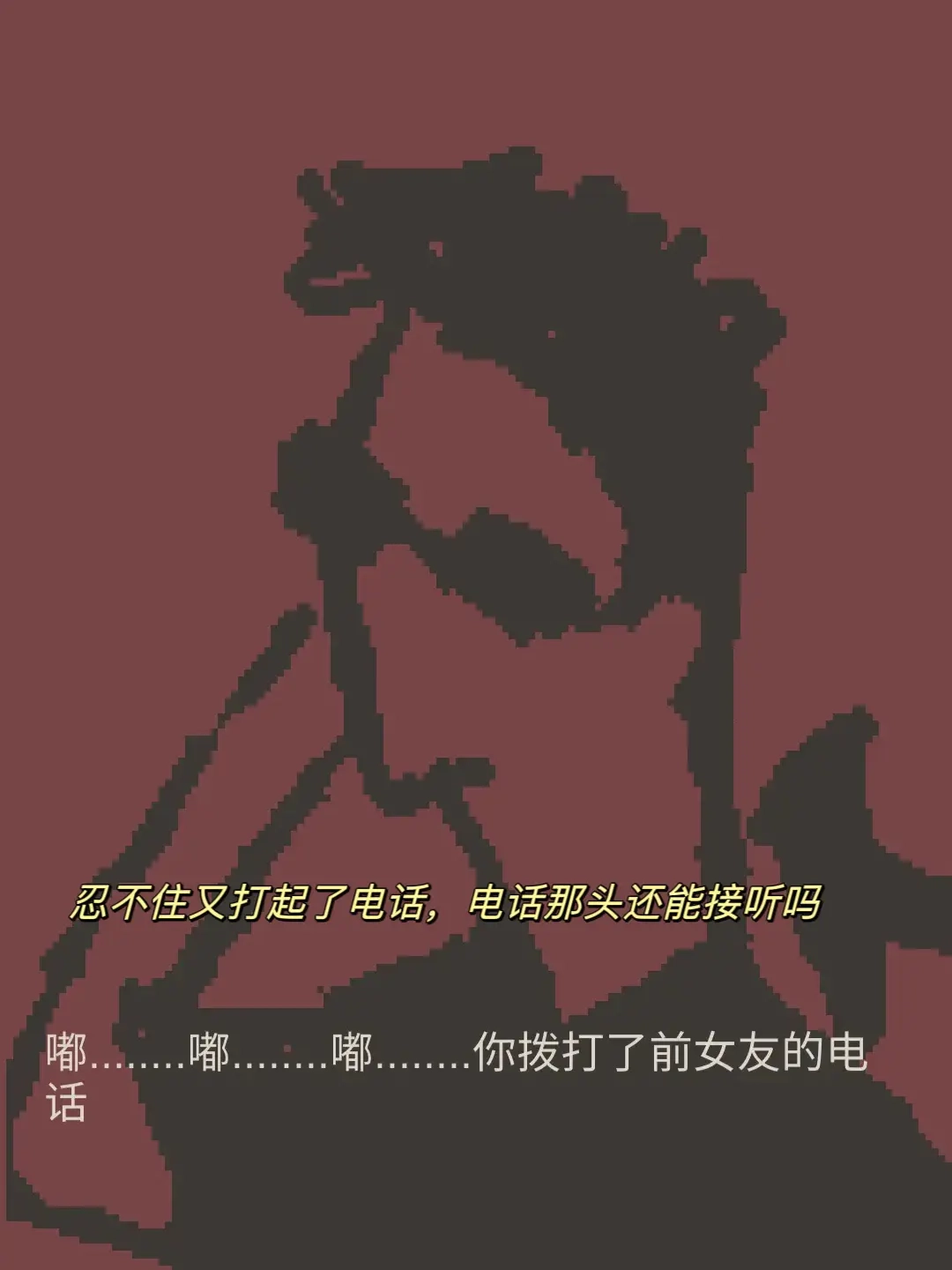 2、另一种结局是主角的丧值变为负数,此时主角会打电话给前女友,游戏随即宣告失败。