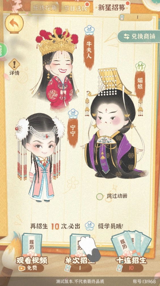 某某朝的女子乐坊是一款围绕古代音乐文化展开的模拟经营游戏,玩家将穿梭至一个虚构的古代王朝,化身乐坊的经营者,招揽才华横溢的女性乐师,组建专属于自己的音乐团体。通过编排乐曲、组织演出以及参与宫廷赛事,逐步提高乐坊的知名度,最终成为闻名天下的顶尖乐坊。
