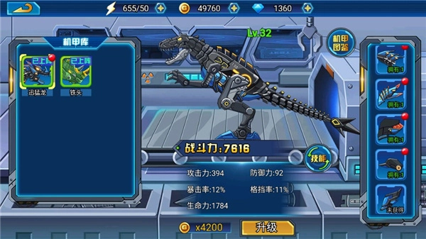 提升机甲兽的基础属性值时,当机甲兽达到65级开启附体功能(附体状态下会为自身提供30%的属性加成),此时投入资源提升基础属性的性价比是最高的。前期阶段不建议把钞票大量花费在这方面,根据充能的进度情况,适量投入资源就可以了。提升机甲兽基础属性需要消耗的物品包括钞票和机甲零件,获取这些消耗物品的途径有两个:一是通过机甲地穴(随机产出),二是上古宝库(使用古代机甲核心进行购买)。