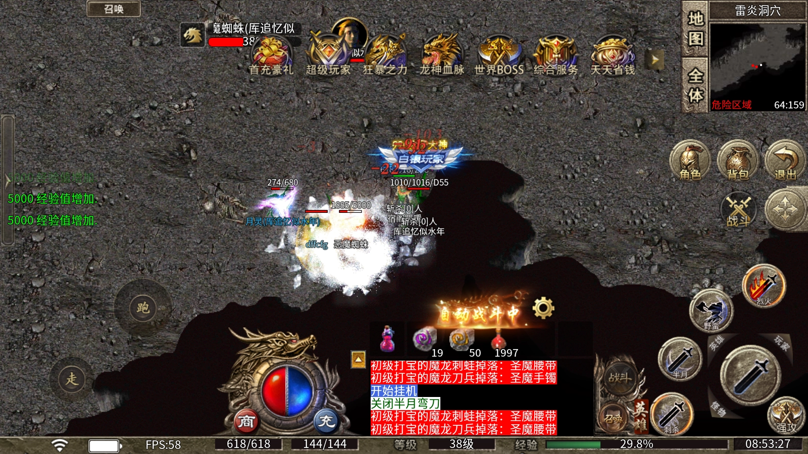 所有BOSS的刷新时间均为30到60分钟,每个人都有机会获得终极装备。