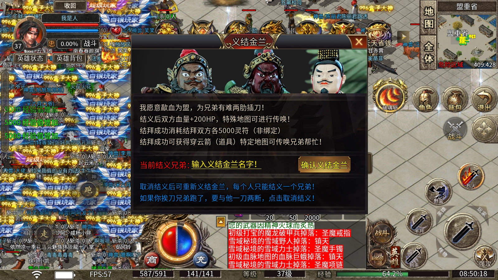 义结金兰:结义后双方血量+200HP,特殊地图可进行传唤!结拜成功消耗结拜双方各5000灵符(非绑定),结拜成功可获得穿云箭(道具),特定地图可传唤兄弟帮忙!