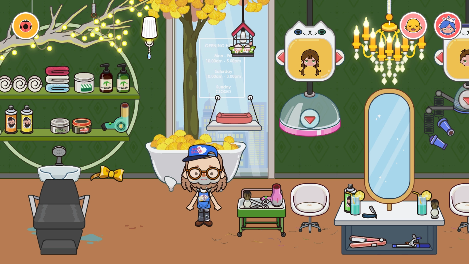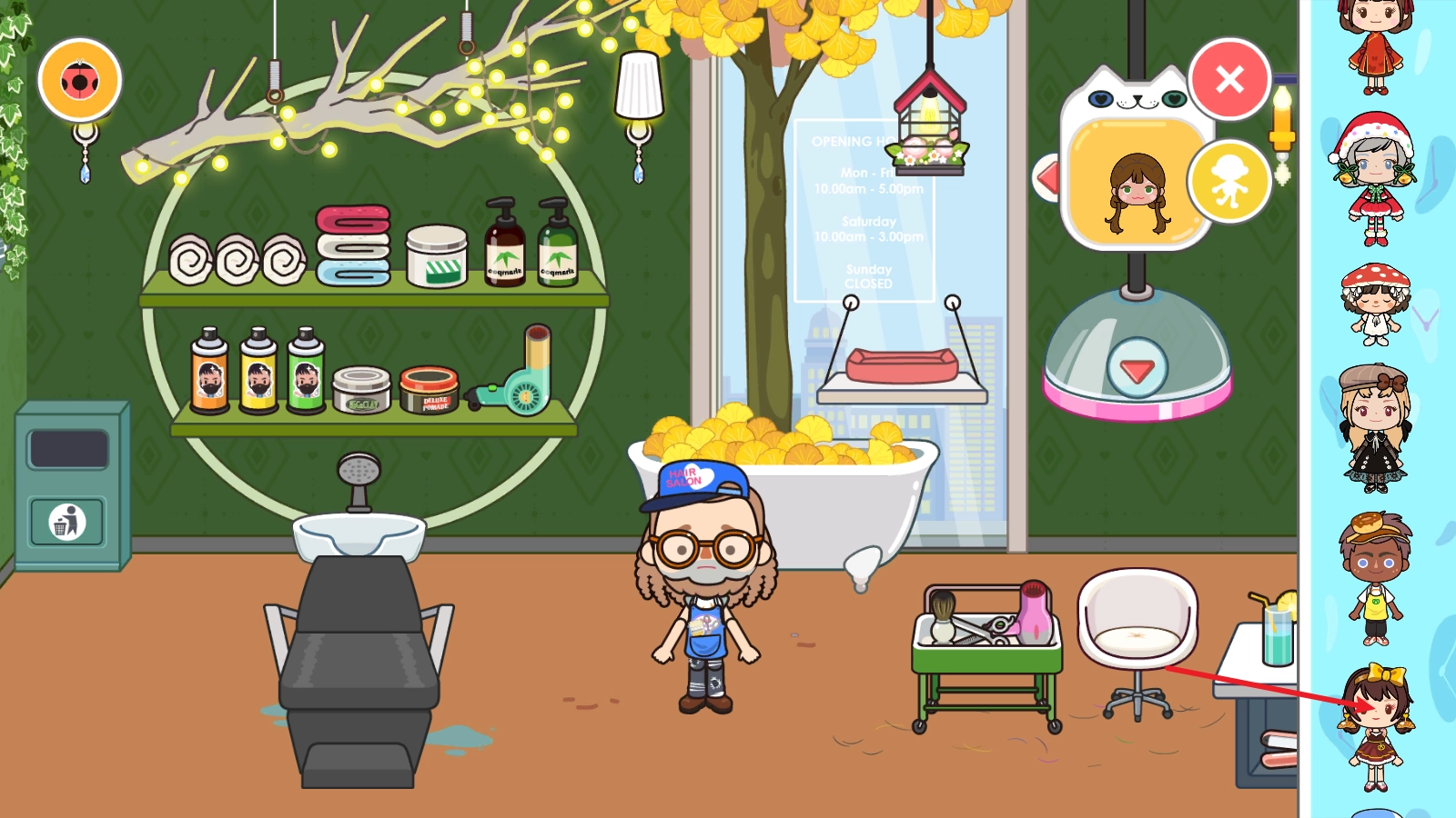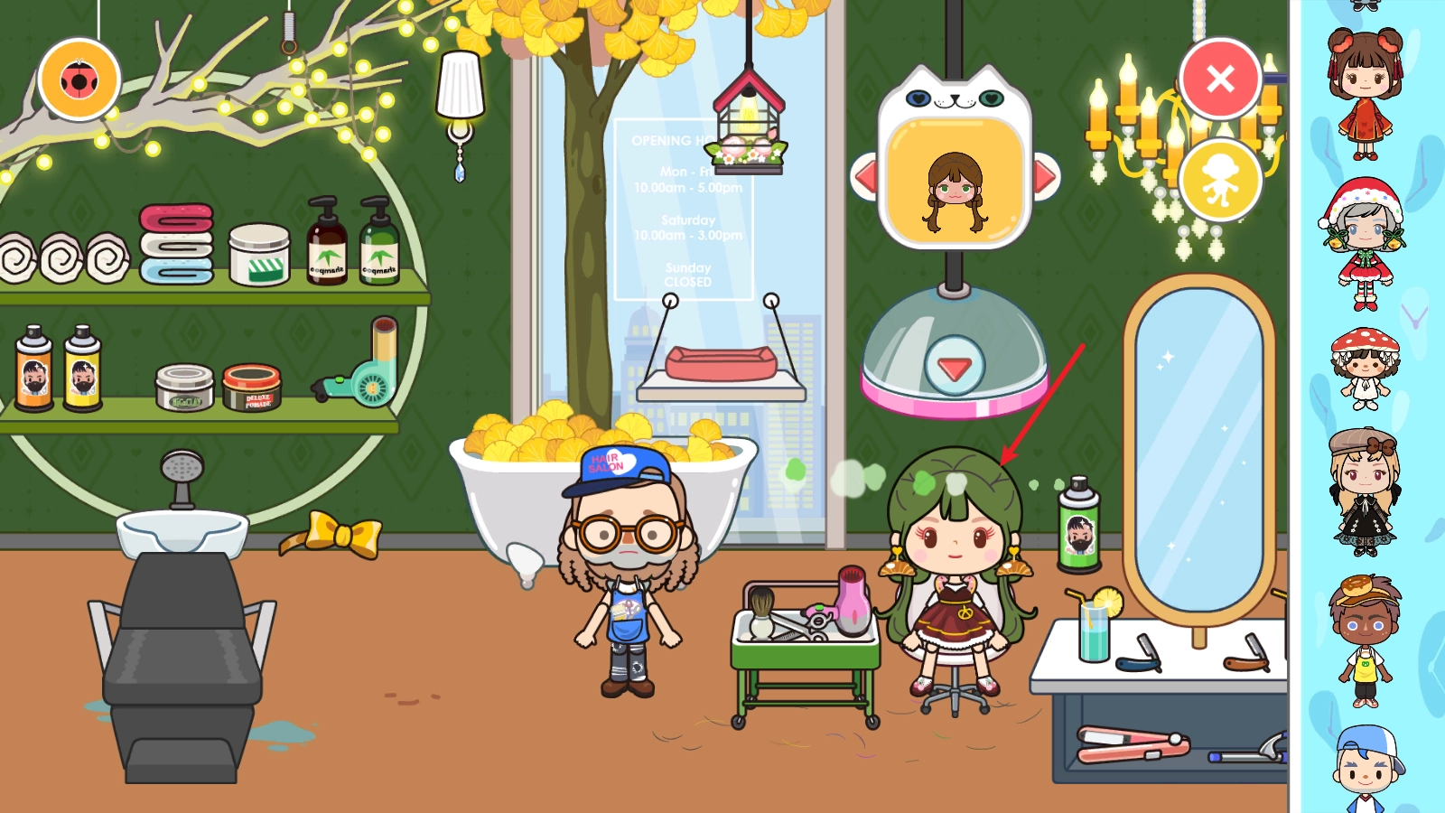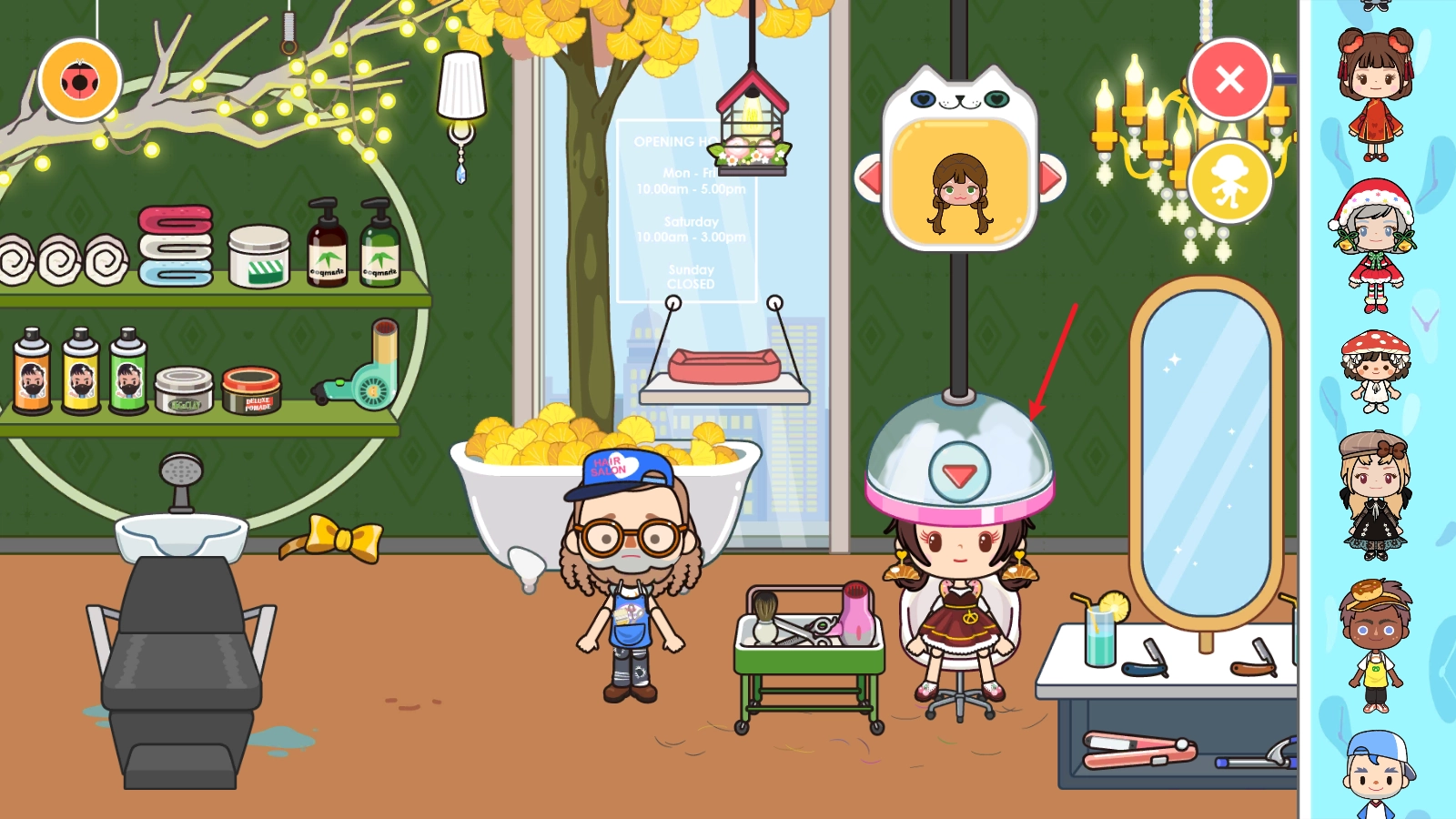 1、游戏中我们可以挑选任意场景进入,例如这里进入了一家理发店。