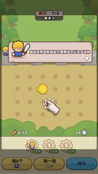 2、通过战斗收集金币与材料,用于解锁近战、远程、防御、魔法等类型的新兵种,丰富战术选择。