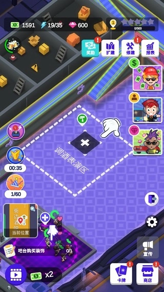 随着玩家积累的资金不断增加,后续你可以解锁更多区域来丰富酒吧的活动内容,比如下方的雕酒表演区,既能吸引更多客流,又能为你带来额外的资金收益。