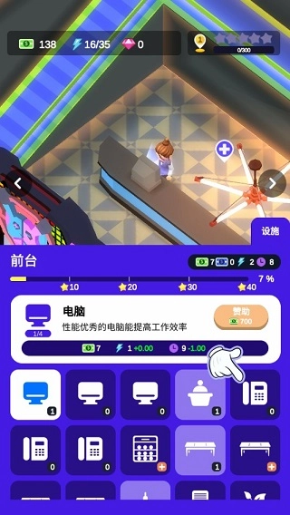 首先,酒吧前台需要添置一台电脑,否则员工将无法正常开展工作。具体操作步骤为:点击酒吧前台对应的区域,详情可参考下图展示。